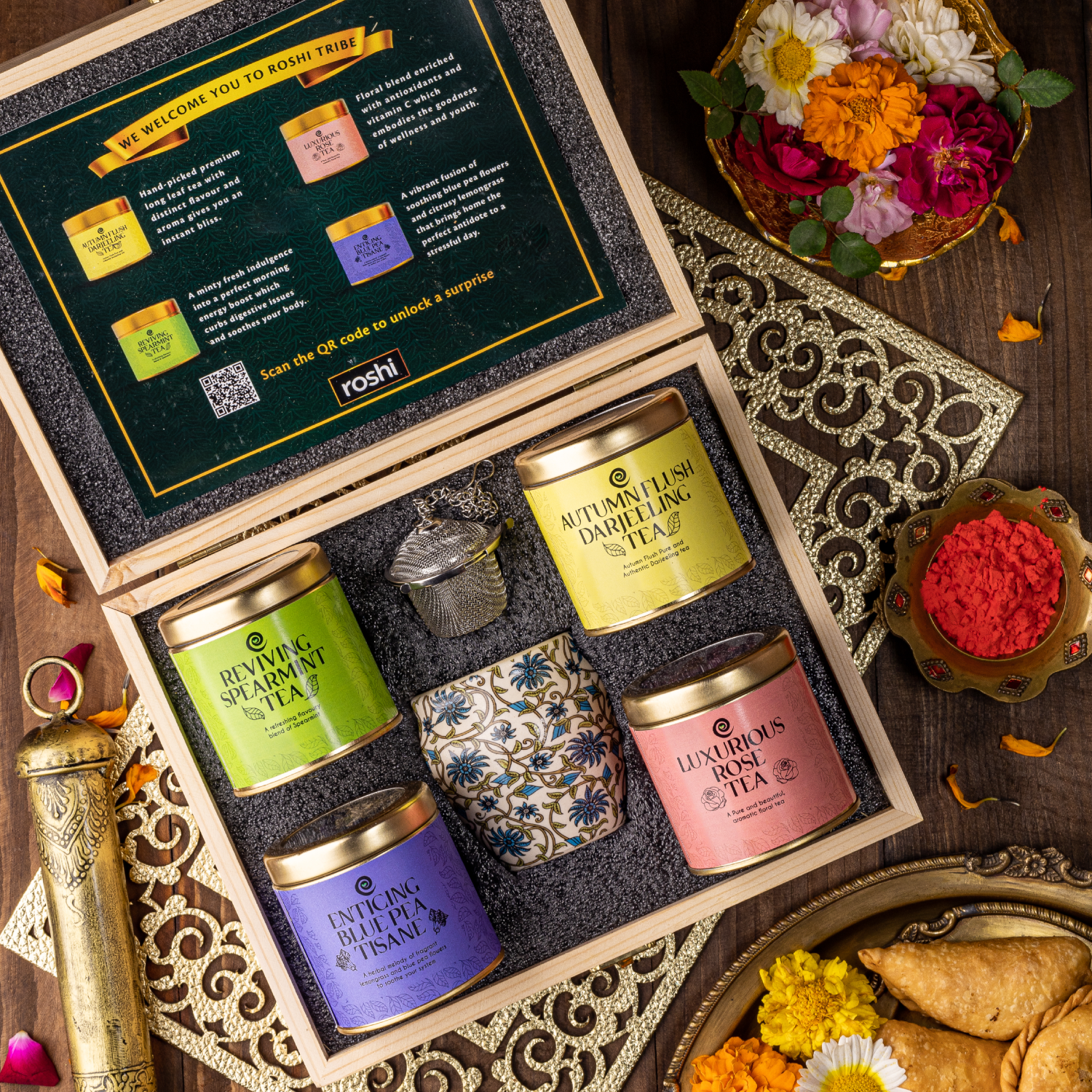 Roshi Limited Edition Pinewood Luxury Tea Gift Box is handcrafted happiness, delivered.